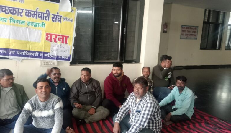 हल्द्वानी नगर निगम परिसर में सफाई कर्मचारी संघ का 16वें दिन भी धरना जारी, कार्य बहिष्कार की चेतावनी
