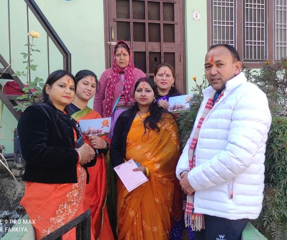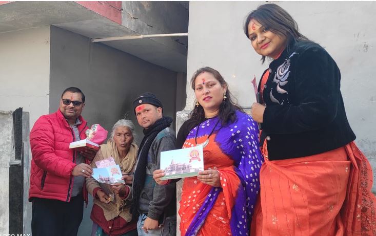 , जोशीमठ नगर में जहां बच्चे,नौजवान,बुजुर्ग, सहित बड़ी संख्या में महिला समूहों की टोलियां गली गली मोहल्लों गांव की पगडंडियों में भजन कीर्तन के साथ हाथो में पूजित अक्षत और प्रभु श्री राम के मंदिर की फोटो और निमंत्रण वितरन करने के लिए घूमती दिखाई दे रही है,