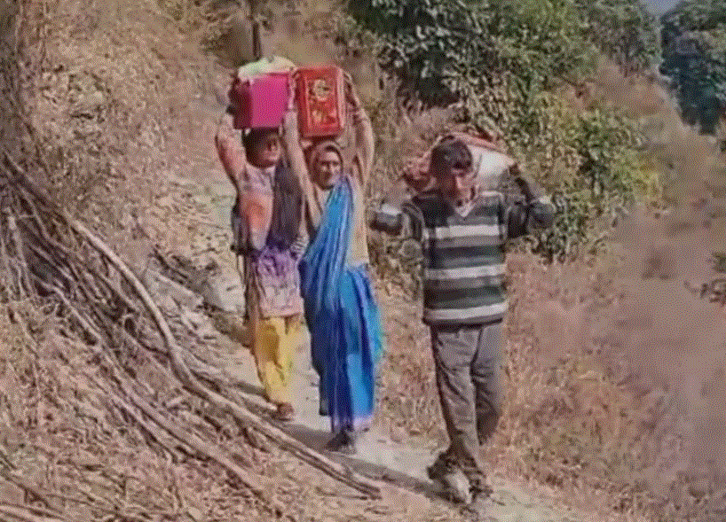 हालांकि चंपावत विधायक व प्रदेश के मुख्यमंत्री पुष्कर सिंह धामी चंपावत जिले को आदर्श चंपावत बनाने की कवायद में जुटे हैं लेकिन आज भी चंपावत जिले के कई क्षेत्रों में सड़क तक नहीं पहुंची इन्हीं क्षेत्र में से एक है चंपावत जिले का दूरस्त तल्ला खटोली का भीजर तोक जहां के ग्रामीण देश की आजादी के 76 साल बाद भी सड़क के लिए संघर्ष करते हुए नजर आ रहे हैं गांव के मनोज भट्ट, कृष्ण सिंह ,घनश्याम भट्ट ,किशोर भट्ट आदि ने बताया उनके गांव तल्ला खटोली के भीजर तोक में आज तक सड़क नहीं पहुंची है जिस कारण ग्रामीण आज भी किलोमीटर में पैदल चलकर सर पर बोझ ढो रहे हैं ,मरीजों को डोली के सहारे सड़क तक पहुंचाया जाता है ,बुजुर्गों को वृद्धावस्था पेंशन वह अन्य कार्यों के लिए दो दिन का समय लगता है ,बच्चे स्कूल जाने के लिए खतरनाक जंगली रास्तो व व नदी व जंगलों को पार कर स्कूल पहुंचते हैं