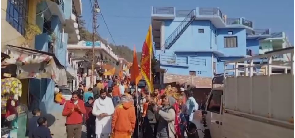 राष्ट्रीय स्वयंसेवक संघ के नगर कार्यवाहक मुकेश जी ने बताया सोमवार को अयोध्या में हुए राम मंदिर प्राण प्रतिष्ठा कार्यक्रम के तहत आज मंगलवार लोहाघाट नगर के रामलीला मंच से भगवान श्री राम की भव्य शोभायात्रा निकाली गई