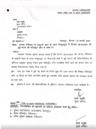 हल्द्वानी के बनभूलपुरा में हुई घटना को लेकर मजिस्ट्रेट जांच के आदेश