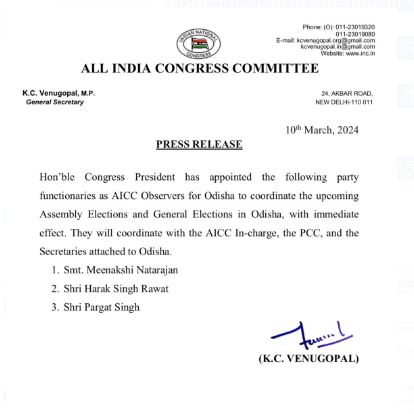 ओडिशा में आगामी विधानसभा और लोकसभा चुनाव में समन्वय के लिए दी गई जिम्मेदारी