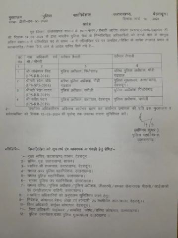 उत्तराखंड से बड़ी खबर सामने आ रही है। लोकसभा चुनाव पास हैं। आचार संहिता लागू होने से पहले शासन ने कई जिलों के पुलिस कप्तानों को इधर से उधर किया है।
