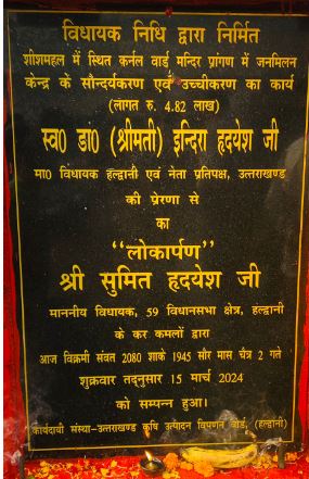 ( लागत रू 4.82 लाख) का आज हल्द्वानी विधायक सुमित हृदयेश ने विधिवत लोकार्पण कर क्षेत्रवासियों को विकास की सौगात प्रदान की।विधायक सुमित हृदयेश ने कहा कि आम जनमानस को सुगम आवागमन प्रदान करने के लिए विधायक निधि से जितना संभव हो, लगातार कार्य किया जा रहा है