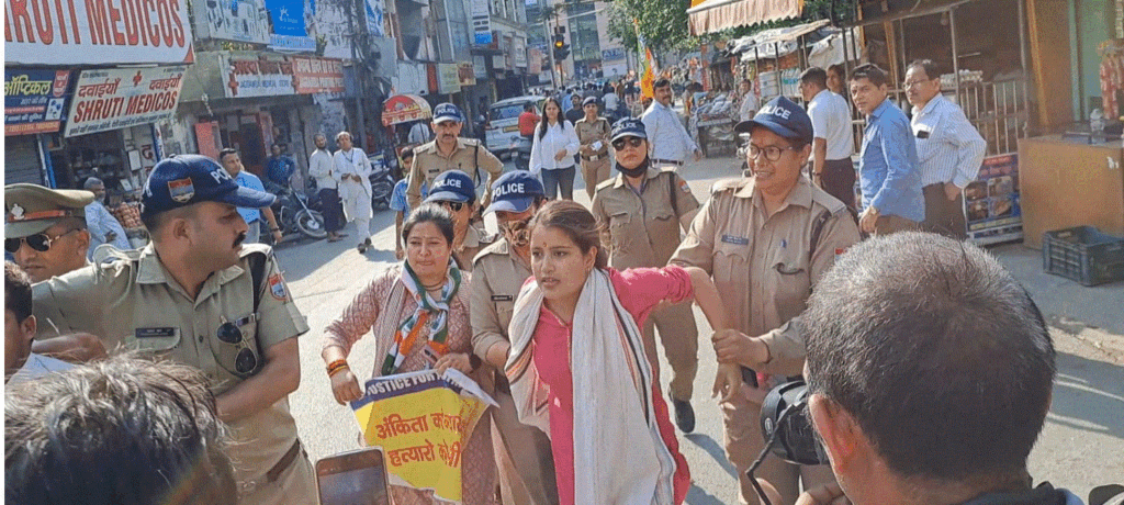 आज प्रदेश उपाध्यक्ष मीमांशा आर्य के नेतृत्व में युवा कांग्रेस के पाधिकारियों ने मुख्यमंत्री पुष्कर सिंह धामी के रोड शो में काले झंडे दिखाकर अंकिता भंडारी को न्याय दो के पोस्टर दिखा कर विरोध प्रदर्शन किया।