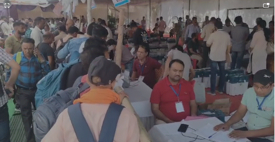 चुनाव कार्यालय से पोलिंग पार्टी या रवाना होती हुई