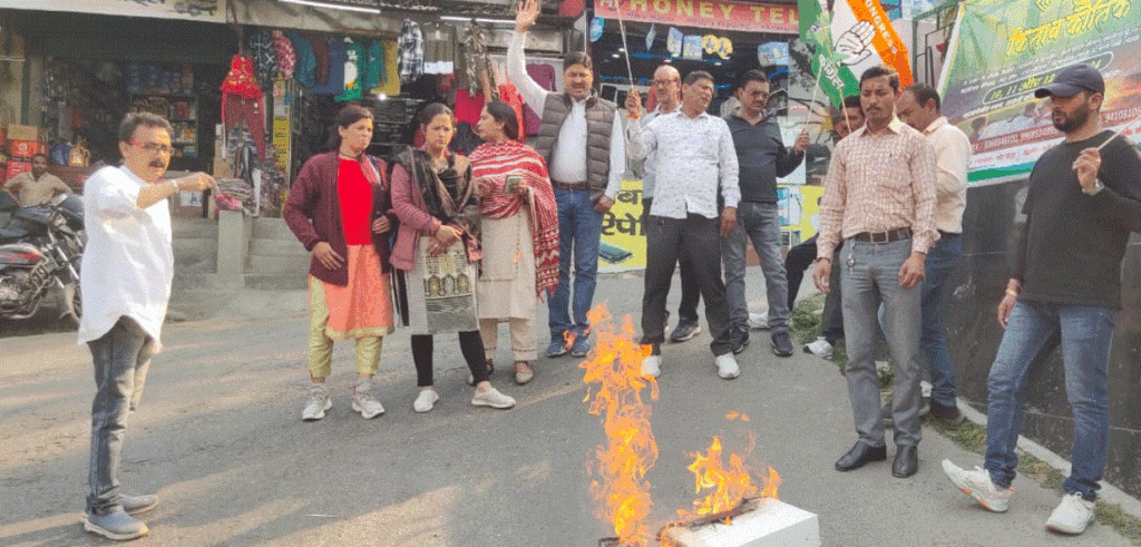 रानीखेत में कांग्रेस कार्यकर्ताओं ने भाजपा सरकार पर भ्रष्टाचार का आरोप लगाते हुए पुतला दहन किया।आडियो वायरल प्रकरण से विपक्ष को बैठे बिठाए मुद्दा मिल गया है।