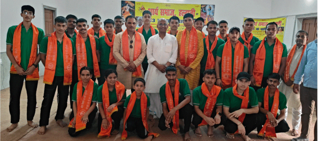 धनुर्धरों का देश है ,वीर वीरांगनाओं का देश है इस देश की संस्कृति सबसे प्राचीन एवं गौरवशाली है, विश्व के देशों ने भारत से सदैव मानवता की शिक्षा प्राप्त की है वही भारतवर्ष पुनः विश्व गुरु तभी बनेगा जब हर घर में वेद का उपदेश होगा, रामायण की कथा होगी, गीता का संदेश दिया जाएगा। इस कार्यक्रम में अमृतसर से पधारे हुए अंतर्राष्ट्रीय भजननोपदेशक पंडित दिनेश पथिक जी ने सुमधुर भजनों से सभी के मन को आकर्षित किया, प्रभु भक्ति, देश भक्ति एवं मानव निर्माण से ओतप्रोत भजनों को प्रस्तुत किया । आर्यप्रतिनिधि सभा उत्तराखंड के प्रधान श्री डी पी यादव ने कहा कि आर्य समाज का उद्देश्य हर व्यक्ति को धार्मिक आध्यात्मिक बनने के साथ-साथ राष्ट्रभक्त बनाना है विद्यार्थियों का निर्माण हो या गृहस्थियों का संस्कार संपन्न परिवार , या वानप्रस्थ और संन्यास की परंपरा इन सबको आर्य समाज पोषित करता है ।हल्द्वानी आर्य समाज के प्रधान प्रोफेसर विनय विद्यालंकार ने कार्यक्रम के अंत में कुछ संकल्प करवाए जिनमें प्रथम संकल्प था कि प्रत्येक परिवार में सभी सदस्यों को प्रतिदिन न्यूनतम 1 घंटे एक साथ बैठकर अपनी संस्कृति, सनातन धर्म के विचार और महापुरुषों के जीवन पर चर्चा करनी ही चाहिए