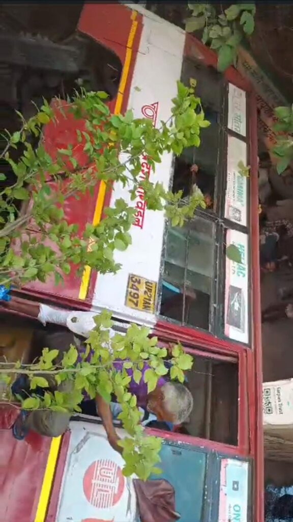 लोग खिड़कियों से बाहर निकलने लगे। मौके पर मौजूद लोग भी बस में फंसे लोगों को बचाने के लिए दौड़ पड़े।