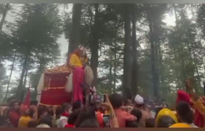 मां भगवती की शोभायात्रा के साथ उनके रथ को कंधा देने वालों की होड़ लगी हुई थी। शोभा सिंहासन रथ यात्रा में महामाया मां भगवती के डांगर के रूप में डॉ सुधाकर जोशी एवं मां महाकाली के रूप में जगदीश जोशी विराजमान होकर चंवर झुलाते हुए श्रद्धालुओं को आशीर्वाद दे रहे थे।