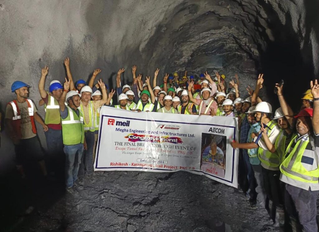 ऋषिकेश करणप्रयाग रेल परियोजना की निकासी सुरंग संख्या 13 आर पर ब्रेक थ्रू।