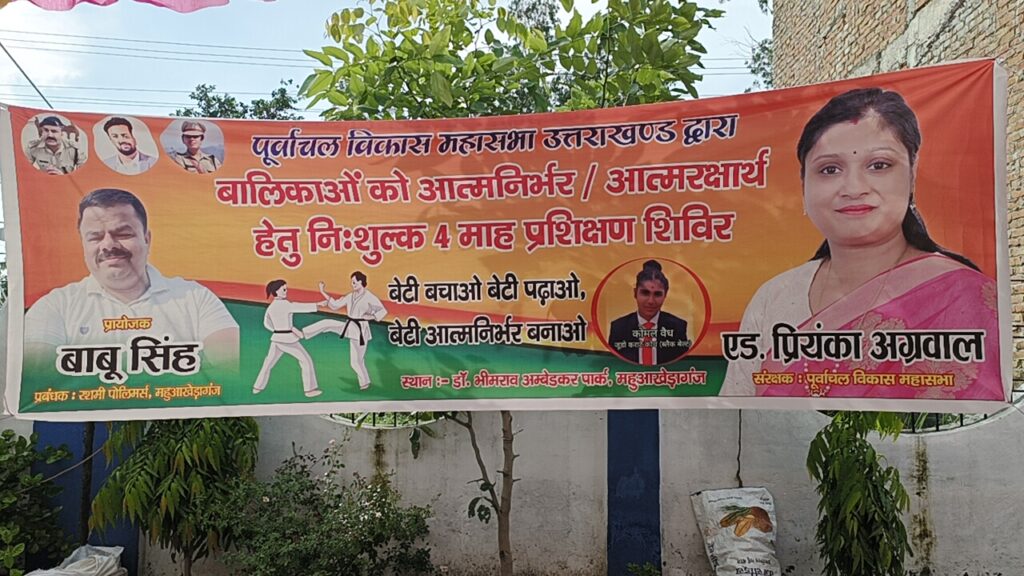 बेटियों को आत्मनिर्भर बनाने के लिए काशीपुर के महुआँखेड़ा गंज मे पूर्बांचल बिकास महासभा उत्तराखंड द्वारा निशुल्क 4महीने का जुडो कराटे प्रशिक्षण के कार्यक्रम का आयोजन किया गया