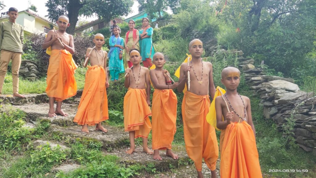 गुरुकुल के आचार्य विवेकानंद एवं संतोष चंदोला द्वारा छात्र चंद्रमोहन,भुवन, प्रमोद,नवीन,राहुल व विवेक को उपनयन संस्कार के बारे में बच्चों को जानकारी एवं गुरुदीक्षा दी,