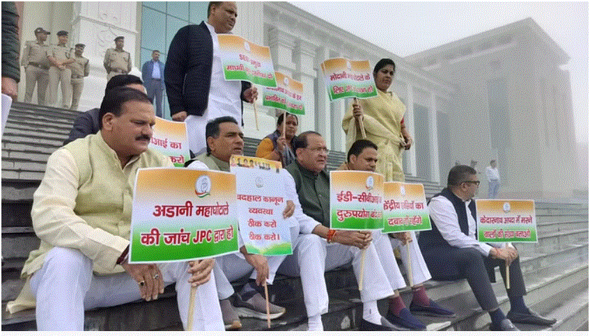 गैरसैंण में उत्तराखंड विधानसभा सत्र के दूसरे दिन आज विपक्ष ने कानून व्यवस्था समेत अन्य कई मुद्दों को धार देकर सदन के बाहर सरकार को घेरा। केंद्रीय जांच एजेंसियों का दुरुपयोग कर विपक्षी नेताओं के खिलाफ कार्रवाई करने के विरोध में कांग्रेस विधायकों ने विधानसभा के बाहर सीडीओ में प्रदर्शन किया। कांग्रेस नेताओं ने पूंजी पत्तियां के खिलाफ और सेबी प्रमुख के खिलाफ भी कार्रवाई करने की मांग की। प्रदर्शन में नेता प्रतिपक्ष यशपाल आर्य, विधायक भवन कापड़ी, विधायक ममता राकेश, विधायक सुमित ह्रदयेश, आदेश चौहान समेत सभी विधायक मौजूद रहे