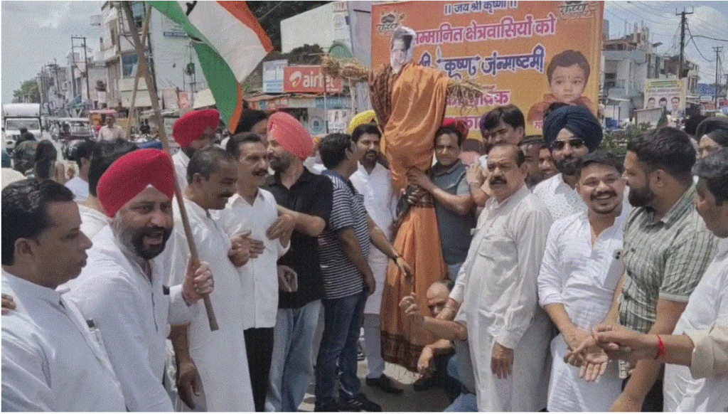 दीनदयाल चौक पर कंगना रनौत का पुतला दहन कर जोरदार प्रदर्शन किया।