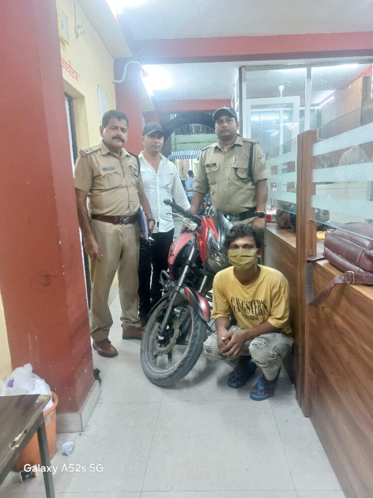 इसी क्रम में पुलिस अधीक्षक हल्द्वानी, क्षेत्राधिकारी महोदय हल्द्वानी के निर्देशन तथा थानाध्यक्ष नीरज भाकुनी के नेतृत्व में थाना बनभूलपुरा पुलिस द्वारा 01 शातिर मोटरसाइकिल चोर को चोरी की मोटरसाइकिल के साथ किया गिरफ्तार कर लिया गया।