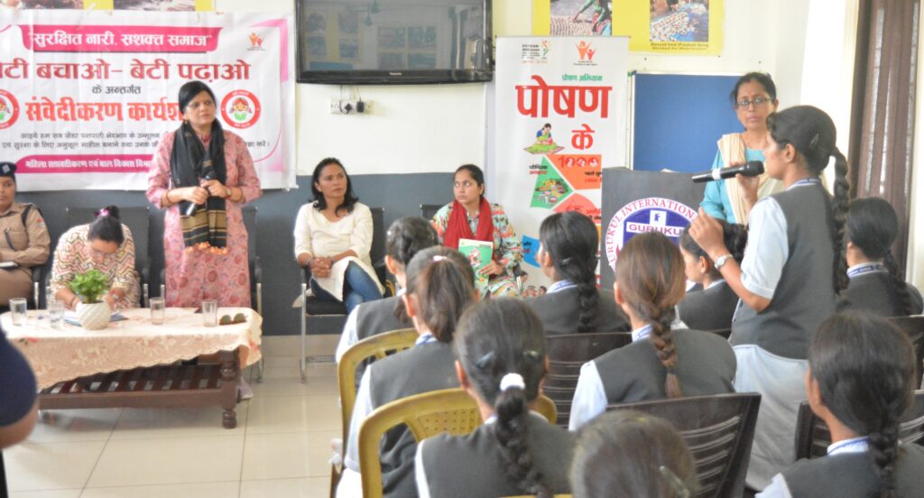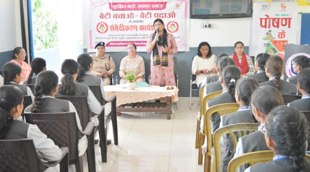 हल्द्वानी में जिलाधिकारी महोदया के निर्देशानुसार लगातार चल रही संवेदीकरण कार्यशाला में आज दिनांक 10 सितंबर 2024 को गुरुकुल इंटरनेशनल स्कूल, हल्द्वानी में महिला एवम बाल विकास विभाग नैनीताल द्वारा बेटी बचाओ बेटी पढ़ाओ अभियान के अंतर्गत “बालिकाओं द्वारा असुरक्षित स्थानों के चिन्हीकरण” विषय में कार्यशाला आयोजित की गई। इस कार्यशाला में जनपद के विभिन्न विभाग जैसे पुलिस, स्वास्थ, शिक्षा एवम परिवीक्षा विभाग से आए हुए अधिकारियों द्वारा बालिकाओं से उनकी