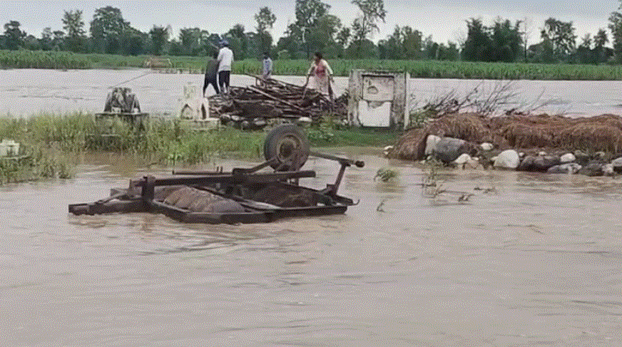 नदी के उफान के चलते सीमांत गांवों में घुसा पानी, ज्ञात हो कि विगत 8/9 जुलाई मे आई भीषण आपदा से भी प्रभावित हुए थे भारत नेपाल सीमा क्षेत्र के य़ह गांव।