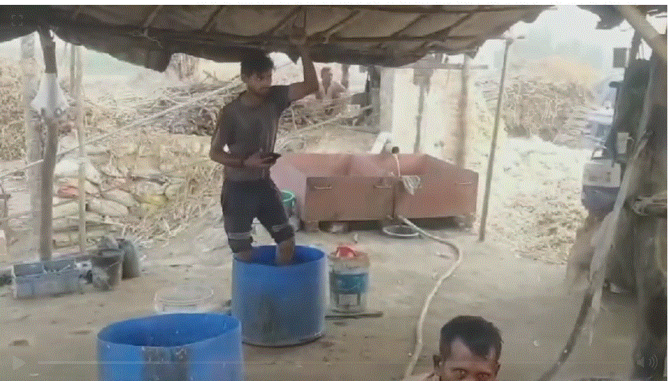 आए कुछ लोग जो 17 मिल चौकी क्षेत्र के अंदर मझोला में कोलू से गुडृ बना रहे हैं उन में से एक गुलशेर नाम का व्यक्ति जो कोलू में गुड बना रहा है वह गुड साफ करने वाले मसाला जो हाथ से गूथ कर गुड में मिलाकर गुड साफ किया जाता है वही यह लोग मसाले को पैरों से गूथ कर गुड में मिला रहे हैं वहीं यह गुडृ स्थलीय