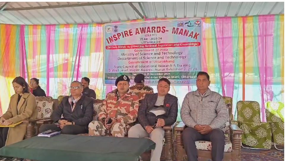 जनपद उत्तरकाशी के राजकीय आदर्श पीएम इण्डर कालेज मातली में जनपद स्तरीय नन्हें वैज्ञानिक प्रदर्शनी एवं प्रोजेक्ट प्रतियोगिता का दीप प्रज्ज्वलित कर बतौर मुख्य अतिथि कमांडेन्ट सचिन कुमार 12 वीं वाहिनी, आईटीबीपी और मुख्य शिक्षा अधिकारी, शैलेन्द्र अमोली ने