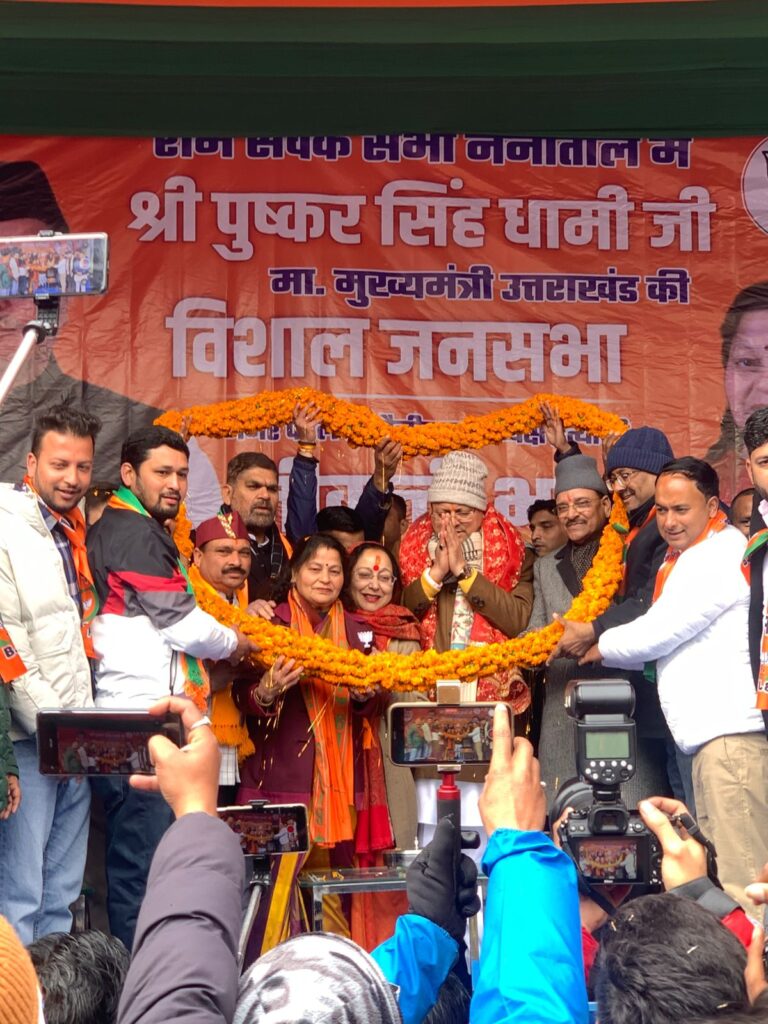 सरोवर नगरी नैनीताल के श्री राम सेवक सभा मैदान में उत्तराखंड के मुख्यमंत्री पुष्कर सिंह धामी ने कड़ाके की ठंड होने के वावजूद भी भाजपा के प्रत्याशियों को विजय बनाने के लिए मतदान करने की अपील आम जन मानस से की।