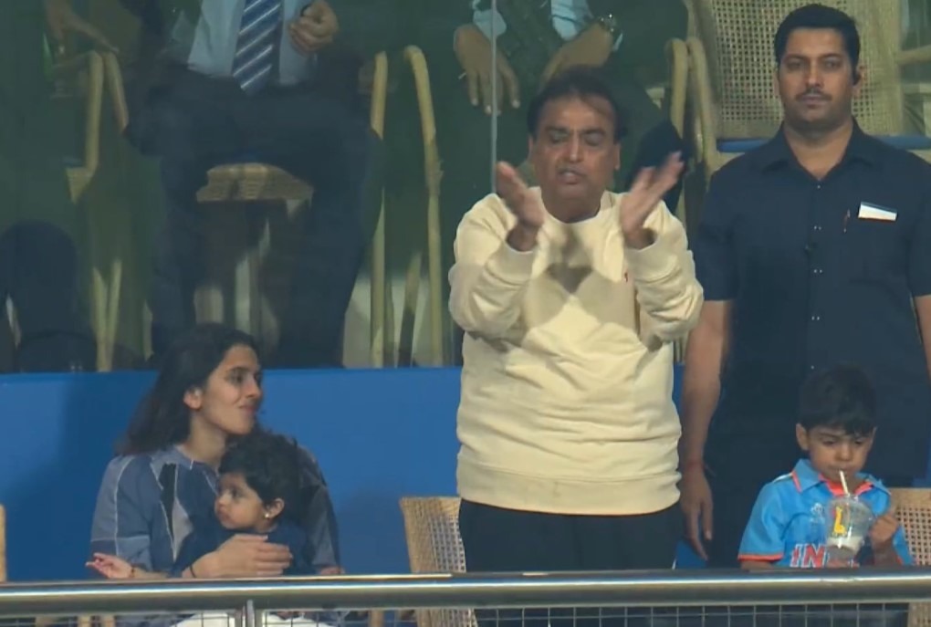 भारत के सबसे सफल बिजनेसमैन मुकेश अंबानी वानखड़े स्टेडियम में मैच देखने के लिए पहुंचे हुए नजर आए। उनके साथ नारायण मुर्ति भी दिखे। नारायण मुर्ति की बेटी से ही ऋषि सुनक की शादी हुई है। मुकेश अंबानी के अलावा उनके परिवार से बेटे आकाश की पत्नी श्र्लोका और उनका बेटा भी स्टेडियम में नजर आया। अभिषेक शर्मा के शॉट को देखकर मुकेश अंबानी इतने इंप्रेस हुए कि वह खड़े होकर तालियां बजाने लगे। बॉलीवुड के शहंशाह अमिताभ बच्चन भी वानखेड़े स्टेडियम में नजर आए। उनके साथ उनके बेटे अभिषेक बच्चन भी दिखे। अभिषेक ने भारतीय टीम की जर्सी पहनी हुई थी। इस दौरान दोनों ही टीम को चीयर करते हुए दिखे।