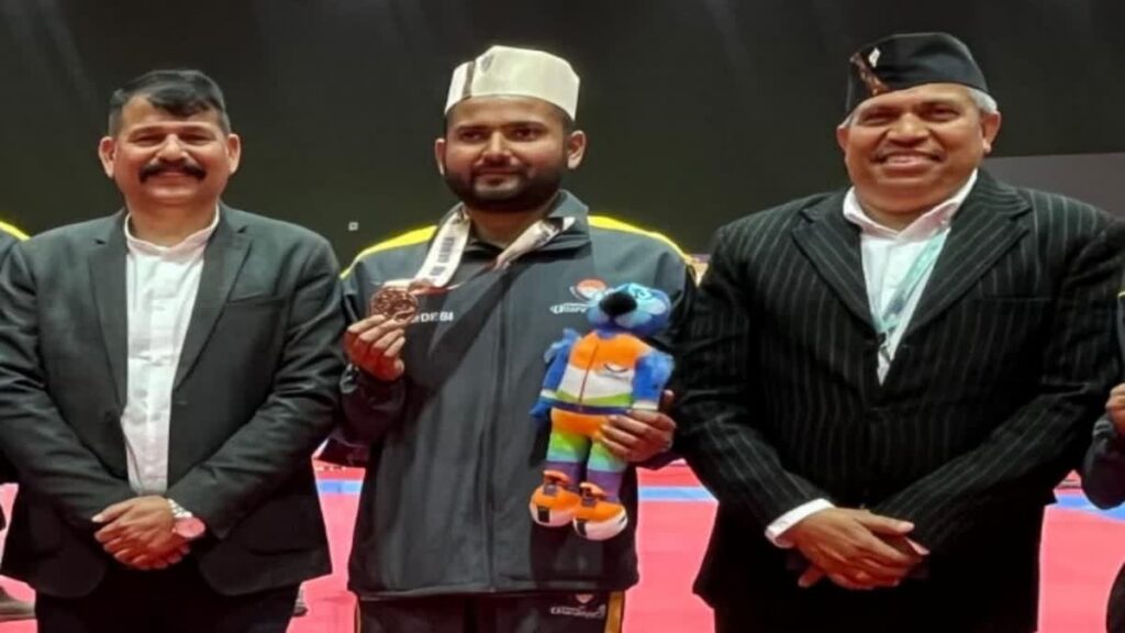 उत्तराखंड में 38वें राष्ट्रीय खेल 2025 के तहत तमाम स्पर्धाएं हो रही हैं. इसी कड़ी में मार्शल आर्ट की प्रतियोगिता हुई. जिसमें खटीमा के रितेश चंद्र ने कांस्य पदक जीत कर उत्तराखंड का नाम रोशन किया है. रितेश की उपलब्धि पर उनके परिजन और खटीमा क्षेत्र के लोगों में खुशी की लहर है.