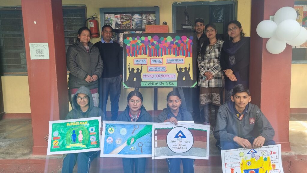 पी एम श्री केंद्रीय विद्यालय रानीखेत में ब्यूरो ऑफ इंडियन स्टैंडर्ड के तत्वाधान में मानक क्लब द्वारा poster making प्रतियोगिता का आयोजन किया गया। प्रतियोगिता का उद्घाटन मुख्य अतिथि प्राचार्य जवाहर नवोदय विद्यालय डी. एस. रावत द्वारा किया गया। सर्वप्रथम, विद्यालय के उप प्राचार्य हरि शंकर सैनी द्वारा मुख्य अतिथि व रिसोर्स person नीतिका बिष्ट अग्रवाल का हरित स्वागत किया गया। प्रतियोगिता में बौध्दिक सत्र का आयोजन किया गया ,