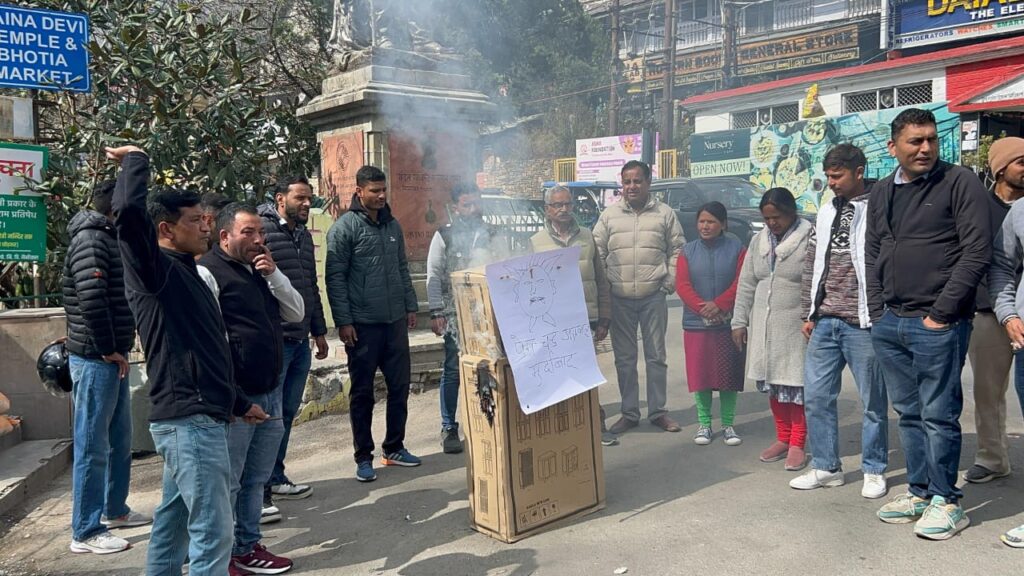 सरोवर नगरी नैनीताल में कांग्रेस कमेटी के महामंत्री कैलाश अधिकारी के नेतृत्व में प्रदेश के संसदीय कार्य मंत्री प्रेम चंद्र अग्रवाल द्वारा पहाड़ी लोगों के खिलाफ की गई अपमानजनक टिप्पणी के खिलाफ पंत पार्क, मल्लीताल में पूतला दहन कर प्रदर्शन किया गया।