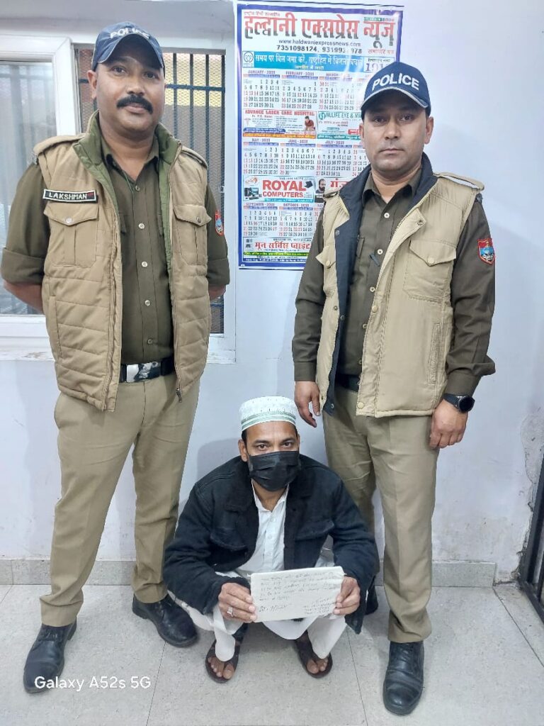 पुलिस टीम द्वारा चैकिंग के दौरान मो0 आलम पुत्र मो0 उमर निवासी लाल मस्जिद के सामने वाली गली ला0 न0 17 थाना बनभूलपुरा जिला नैनीताल उम्र 48 वर्ष को वह्द गौला पार्किंग मे सज्जाद की झोपडी के पास ट्रको की आड मे इलाका थाना वनभूलपुरा जिला नैनीताल से सट्टा की खाई बाडी करते हुऐ मय सट्टा पर्ची पैन गत्ता व नकदी 1790/- रुपये के साथ गिरफ्तार किया गया।