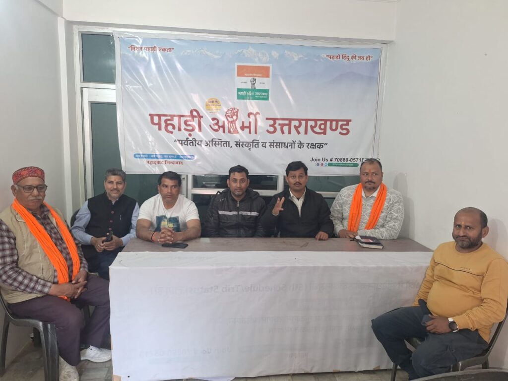 आज हल्द्वानी में प्रेसवार्ता हुई जिसमें कई संगठनों के पधाधिकारी और प्रतिनिधि मौजूद रहे जिसमें कहा कि राज्य विरोधी मानसिकता का पुर जोर विरोधी किया जाएगा जिसके लिए 9 मार्च को हल्द्वानी में पहाड़ी स्वाभिमान रैली का आयोजन होगा जिसमें हजारों लोग प्रतिभाग करेंगे जानकारी देते हुए पहाड़ी आर्मी के अध्यक्ष ने कहा अब राज्य को एक और बड़े आंदोलन की जरूरत है कल की पहाड़ी स्वाभिमान रैली में हजारों लोग शामिल हो रहे जनता को इस बख्त पहाड़ विरोधी मानसिकता के खिलाफ एकजुट होने की जरूरत है देवभूमि में ऐसे लोगों की कतई जरूरत नहीं है जो इस पहाड़ की अस्मिता से,संस्कृति से ,संसाधनों से छेड़ छाड़ करता हो।