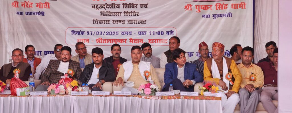 विकास खंड द्वाराहाट अंतर्गत उत्तराखंड सरकार के 3 साल पूर्ण होने के अवसर पर जन सेवा थीम पर आधारित कार्यक्रम के तहत शीतलापुष्कर मैदान द्वाराहाट में एक बहुउद्देशीय एवं स्वास्थ शिविर का आयोजन किया गया। शिविर कार्यक्रम का शुभारंभ पलायन निवारण आयोग के सदस्य अनिल शाही पलायन, दीपक किरौला प्रशाषक क्षेत्र पंचायत, संगीता आर्या अध्यक्ष नगर पंचायत द्वारा दीप प्रज्वलन कर किया गया ।