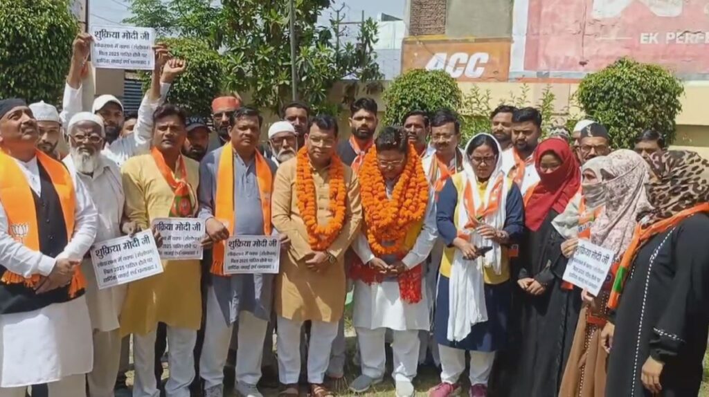 इस अवसर पर बड़ी संख्या में मुस्लिम महिलाएं भी भाजपा कार्यालय पहुंचीं। हाथों में ‘मोदी जी का शुक्रिया’ लिखे बैनर थामे लोगों ने भाजपा के समर्थन में नारे लगाए और केंद्र सरकार के फैसले का स्वागत किया।