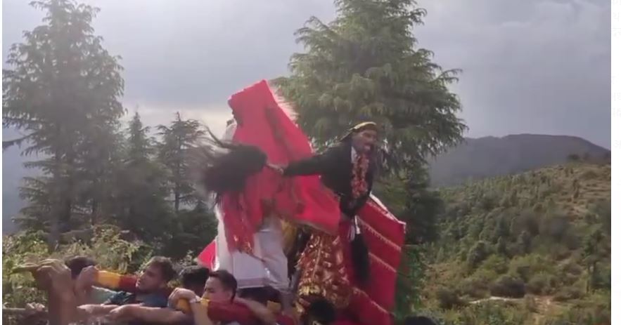 अपराह्न 5 बजे करीब 3 किलोमीटर की दुर्गम चढ़ाई पार करते हुए देवी रथ मंदिर परिसर में पहुंचा। जैसे ही रथ मंदिर परिसर पहुंचा, वातावरण ‘जय माता दी’ के नारों से गूंज उठा। उपस्थित महिलाओं ने देवी रथ पर पुष्पवर्षा कर मां का स्वागत किया।