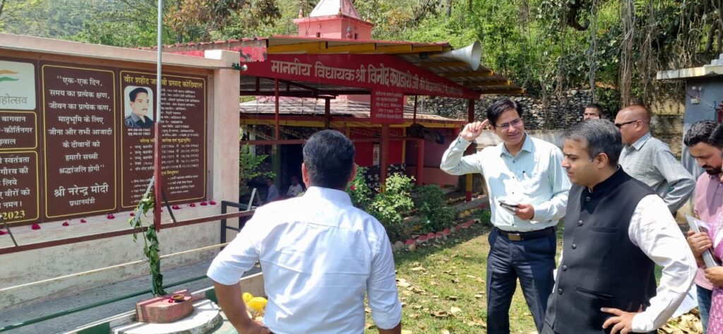 टिहरी गढ़वाल, 18 अप्रैल – उत्तराखण्ड शासन में लोक निर्माण एवं वन विभाग के अपर सचिव विनीत कुमार ने गुरुवार को विकासखण्ड कीर्तिनगर के ग्राम पंचायत बागवान ग्राम तथा विकासखण्ड देवप्रयाग के तुड़गी गांव में चौपाल आयोजित की। इस दौरान उन्होंने ग्रामीणों से शासकीय योजनाओं की स्थिति की जानकारी ली और योजनाओं का स्थलीय निरीक्षण भी किया।