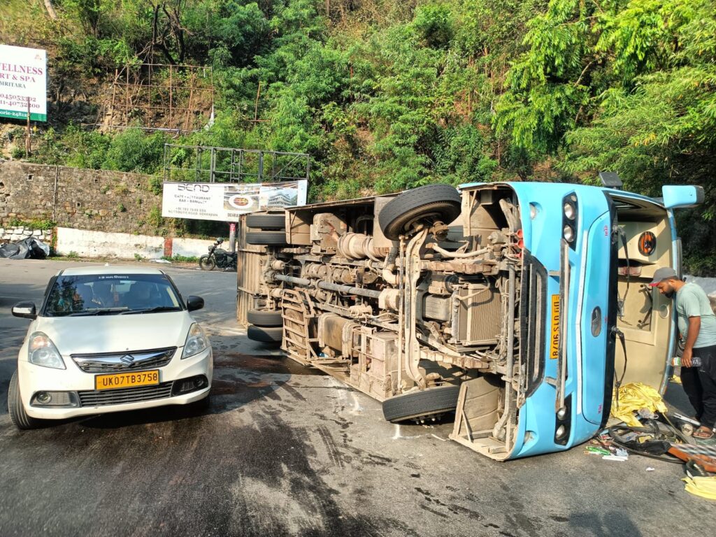 मसूरी, 18 अप्रैल – मसूरी-देहरादून मार्ग पर पानी वाला बेंड के पास उस समय अफरा-तफरी मच गई जब दिल्ली से आ रही एक सवारी बस अचानक कमानी टूटने के कारण अनियंत्रित होकर पलट गई। गनीमत रही कि बस की रफ्तार धीमी थी, जिससे एक बड़ा हादसा टल गया।