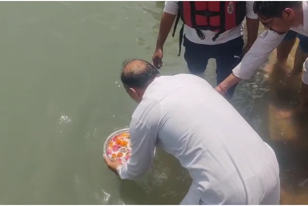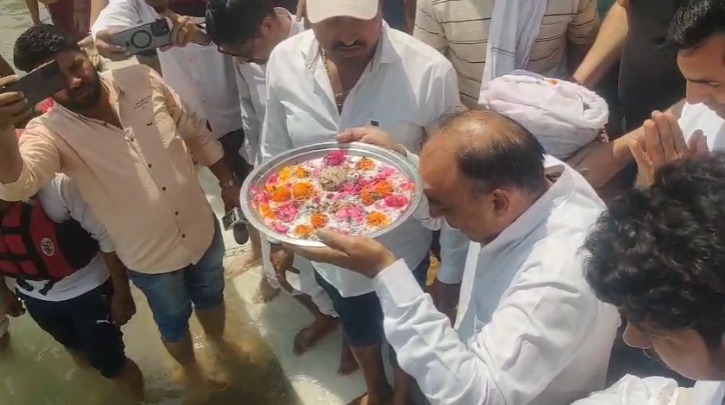 पहलगाम आतंकी हमले में शहीद हुए करनाल निवासी वीर जवान विनय नरवाल की अस्थियों का आज हरिद्वार की हर की पैड़ी पर विधिवत पूजा-अर्चना और वैदिक मंत्रोच्चार के साथ गंगा में विसर्जन किया गया