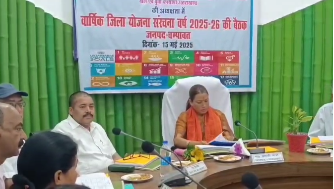 गुरुवार को चंपावत जिले के बनबसा स्थित एनएचपीसी अतिथि गृह सभागार में जिला योजना समिति की बैठक जनपद प्रभारी मंत्री एवं उत्तराखंड सरकार की महिला सशक्तिकरण, बाल विकास, खाद्य, नागरिक आपूर्ति, उपभोक्ता मामले, खेल एवं युवा कल्याण मंत्री रेखा आर्या की अध्यक्षता में आयोजित की गई। बैठक में वित्तीय वर्ष 2025–26 के लिए कुल ₹68 करोड़ 57 लाख 10 हजार की वार्षिक जिला योजना को सर्वसम्मति से अनुमोदन प्रदान किया गया।