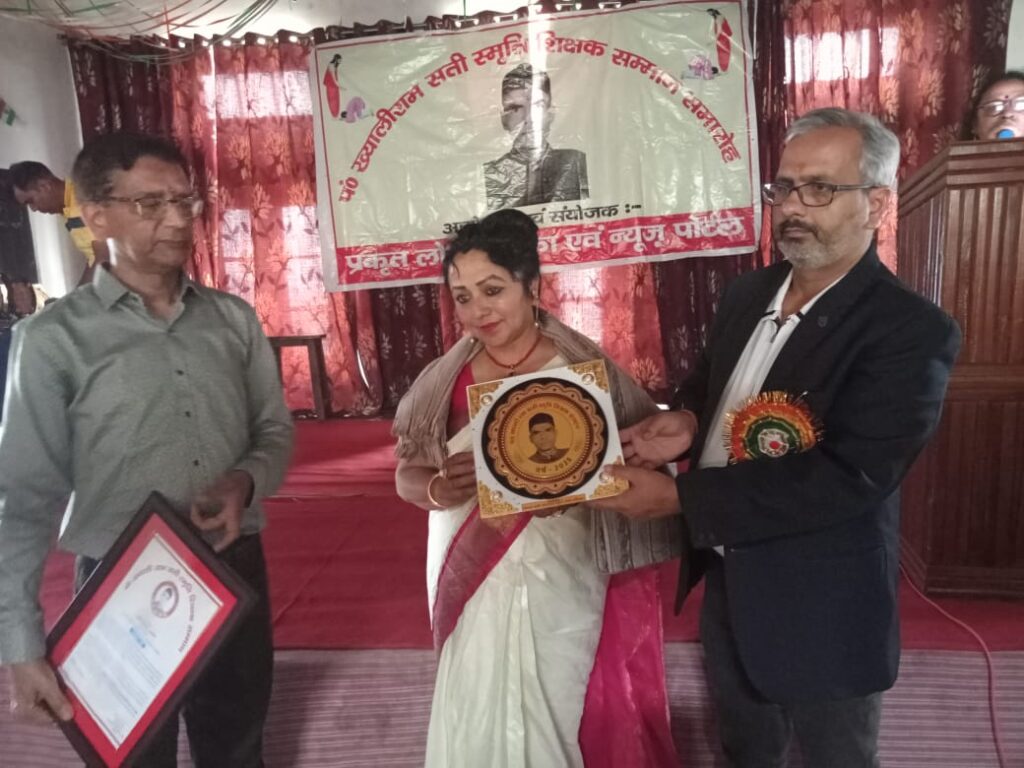 इस अवसर पर विकास खंड ताड़ीखेत के रा.प्रा.वि. खिरखेत की प्रधानाध्यापिका इमराना परवीन, रा.प्रा.वि. जाला की सहायक अध्यापिका उर्मिला बिष्ट, रा.इ.का. शेर के प्रवक्ता दीपक चंद्र बिष्ट और राजकीय आदर्श जूहा डौड़ाखाल के महेंद्र प्रताप सिंह बिष्ट को पं. ख्याली राम सती स्मृति शिक्षक सम्मान से सम्मानित किया गया।