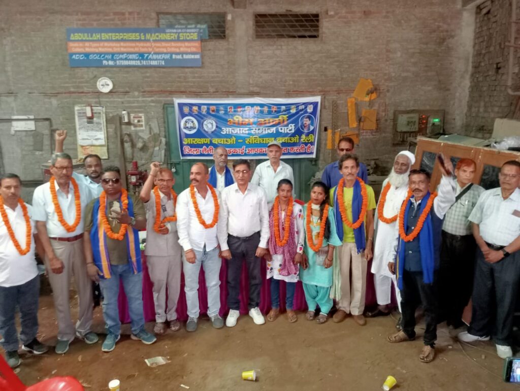 भीम आर्मी द्वारा चलाए जा रहे सदस्यता अभियान के तहत मंगलवार को हल्द्वानी स्थित गोलछा कंपाउंड कार्यालय में एक विशेष सभा आयोजित की गई। कार्यक्रम का नेतृत्व नफीस अहमद खान ने किया, जिसमें दर्जनों लोगों ने आज़ाद समाज पार्टी की सदस्यता ग्रहण की। इस अवसर पर पार्टी के कुमाऊं प्रभारी लेखराज गौतम मुख्य अतिथि के रूप में उपस्थित रहे, जबकि जी.आर. टम्टा विशिष्ट अतिथि रहे। कार्यक्रम की अध्यक्षता सिराज अहमद ने की और संचालन नफीस अहमद खान ने किया।