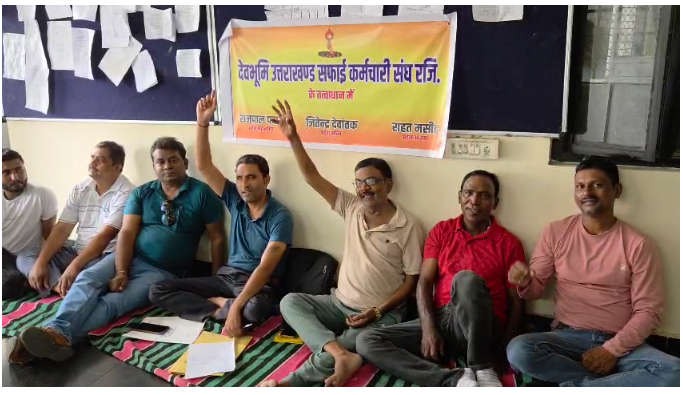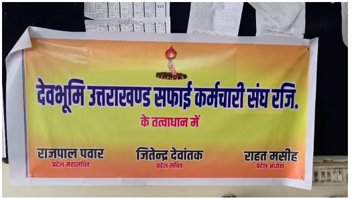 देवभूमि उत्तराखंड सफाई कर्मचारी संघ की ओर से हल्द्वानी नगर निगम परिसर में चल रहा धरना आज छठे दिन भी जारी रहा। संघ के सदस्य अपनी छह सूत्रीय मांगों को लेकर नगर निगम प्रशासन के खिलाफ विरोध दर्ज करा रहे हैं। इस दौरान संघ के उपाध्यक्ष अमित ने निगम पर गंभीर आरोप लगाए।