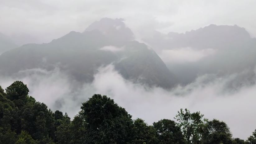 बारिश के साथ पूरा क्षेत्र बादलों की चादर में लिपटा नजर आ रहा है। तेज गर्जना और रुक-रुक कर हो रही वर्षा से वातावरण में ठंडक घुल गई है।