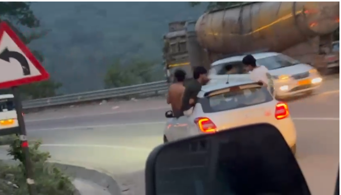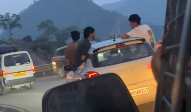 टिहरी जनपद के देवप्रयाग क्षेत्र में NH-7 हाईवे पर खतरनाक स्टंट करते हुए पांच युवकों का वीडियो सोशल मीडिया पर वायरल होने के बाद पुलिस हरकत में आ गई। कार में सवार युवक चलती गाड़ी से बाहर निकलकर जान जोखिम में डालते हुए स्टंट कर रहे थे। इस दौरान वाहन ओवरस्पीड में था और पूरा घटनाक्रम सोशल मीडिया के लिए वीडियो बनाते समय अंजाम दिया गया।