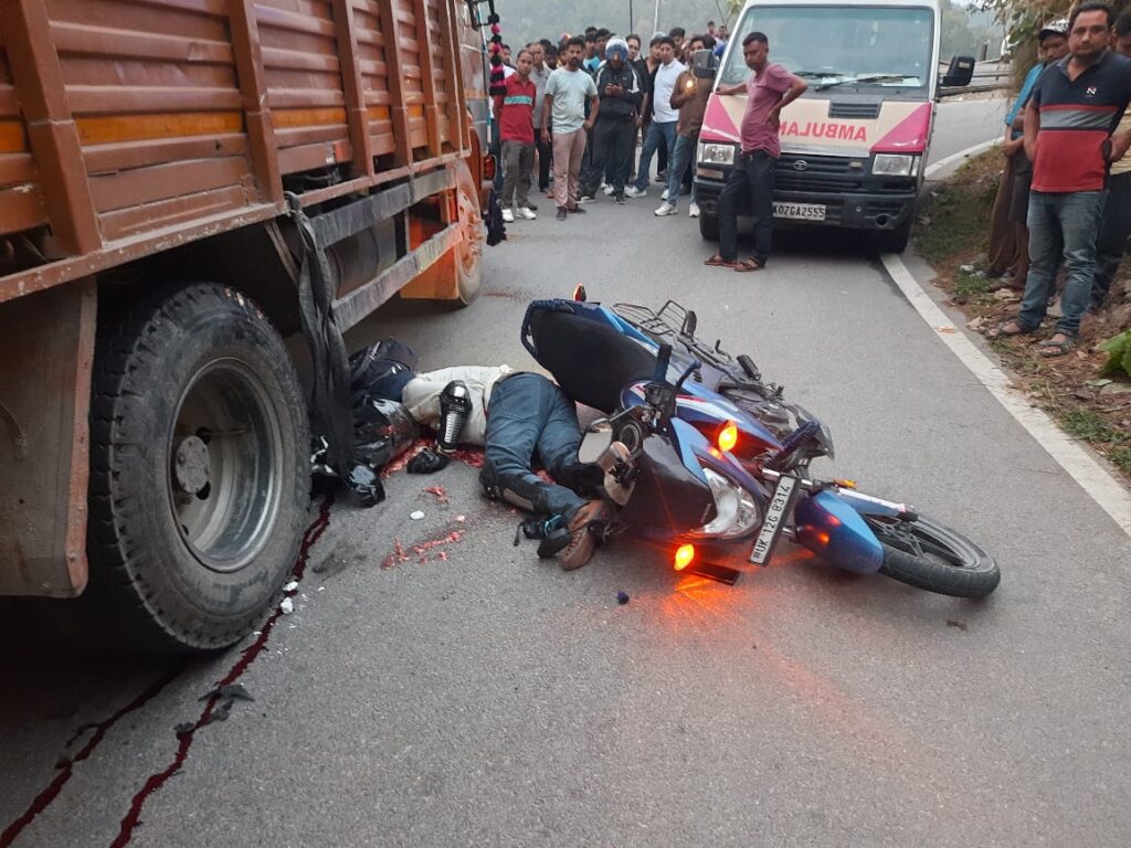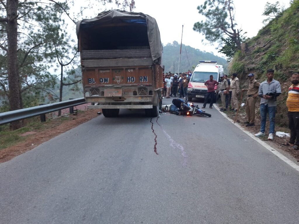 बुरांश होटल के पास उनकी बाइक पीछे से ट्रक (UK13-CA-0678) से टकरा गई।