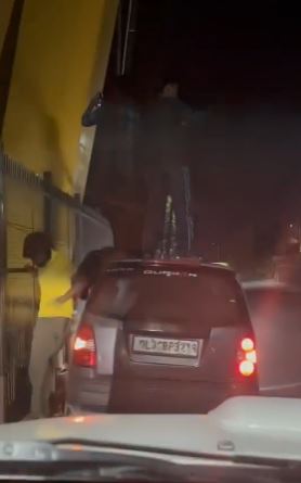 जहां कुछ युवकों ने चलती कार की छत पर चढ़कर खतरनाक स्टंट किए और उसका वीडियो बनाकर सोशल मीडिया पर वायरल कर दिया।