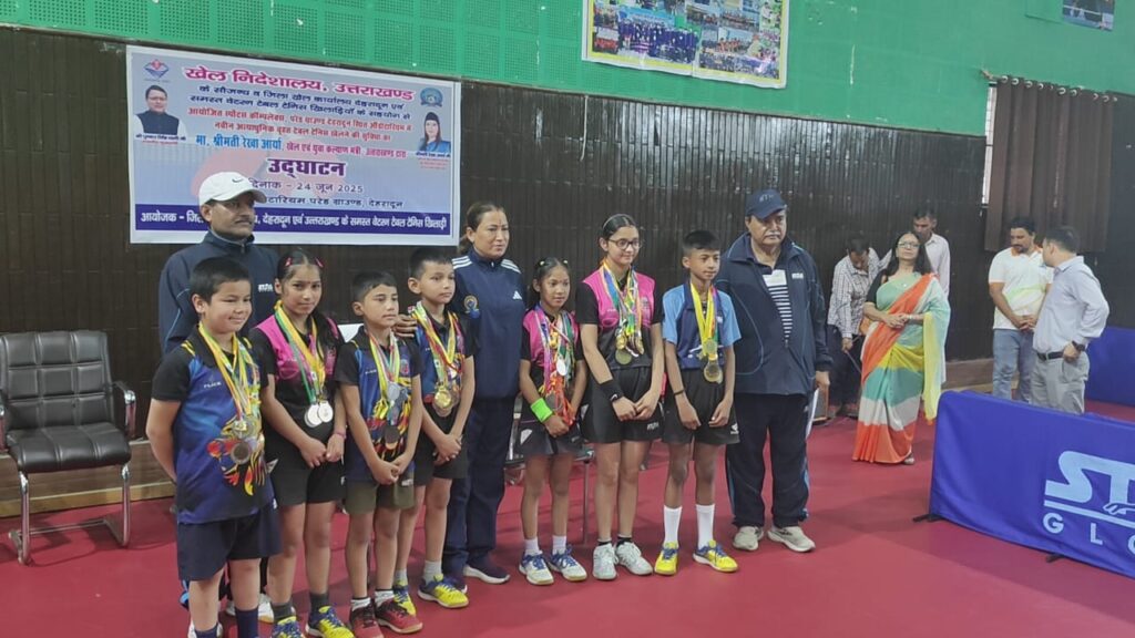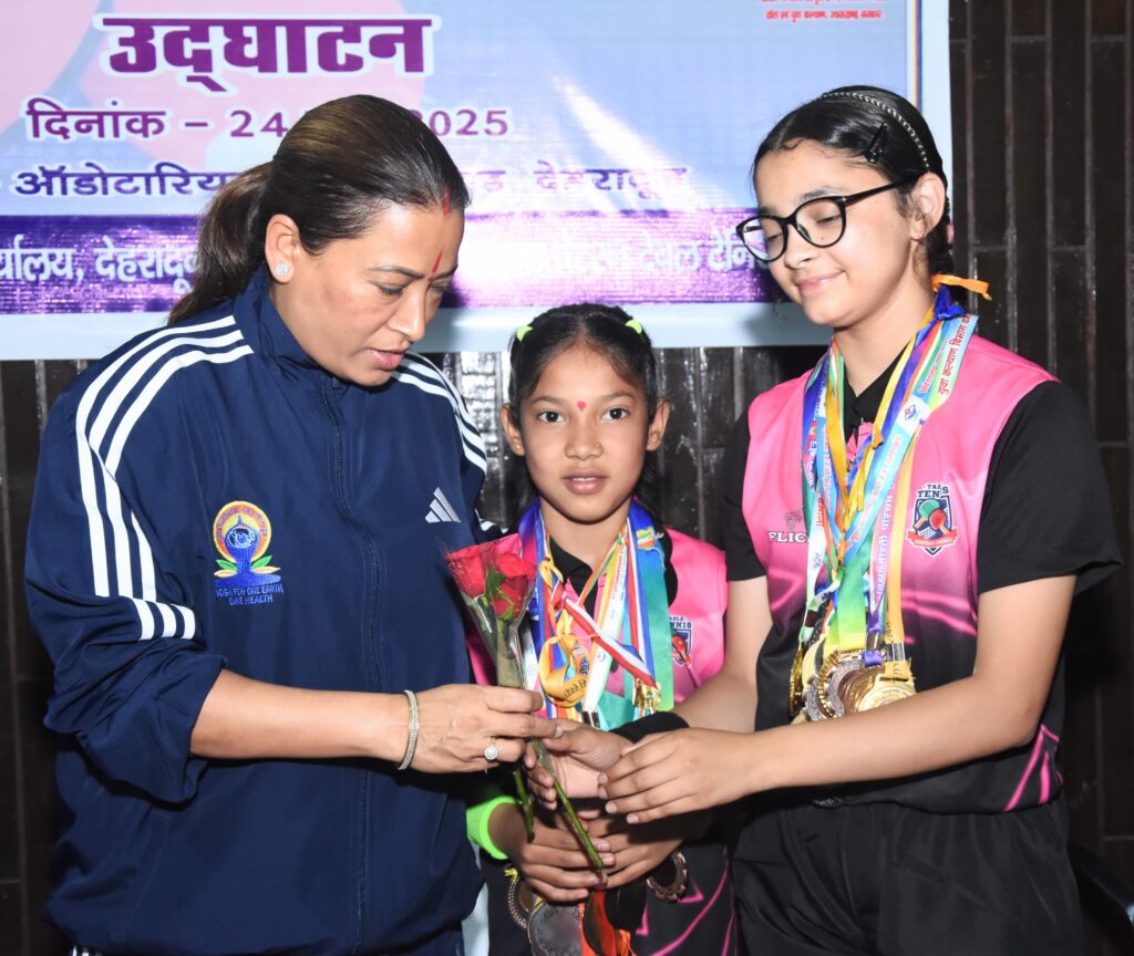जनपद चमोली के सीमांत क्षेत्र ज्योतिर्मठ स्थित टेबल टेनिस ट्रेनिंग सेंटर के राष्ट्रीय स्तर के प्रतिभाशाली खिलाड़ियों का सम्मान समारोह आज देहरादून के परेड ग्राउंड में आयोजित किया गया। यह समारोह खेल विभाग चमोली के मार्गदर्शन में आयोजित किया गया, जिसमें खिलाड़ियों के उत्कृष्ट प्रदर्शन और राज्य स्तर पर किए गए नाम रोशन के लिए उन्हें सम्मानित किया गया।