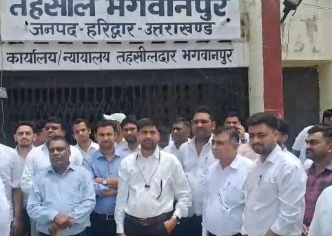 तहसील भगवानपुर में सोमवार को उस समय तनावपूर्ण माहौल बन गया जब दर्जनों अधिवक्ताओं ने एकजुट होकर नायाब तहसीलदार अनिल गुप्ता के खिलाफ मोर्चा खोलते हुए प्रदर्शन किया और कार्य बहिष्कार की घोषणा की।
