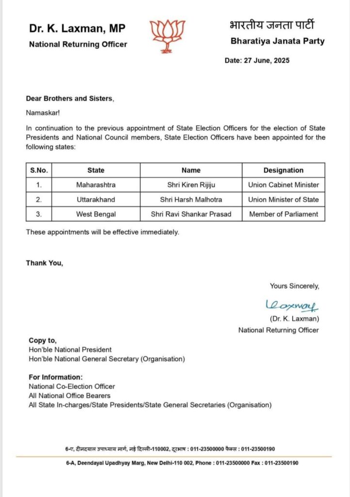 इसी बीच, आगामी विधानसभा और स्थानीय निकाय चुनावों को ध्यान में रखते हुए भाजपा ने हर्ष मल्होत्रा को उत्तराखंड का नया चुनाव प्रभारी नियुक्त किया है।