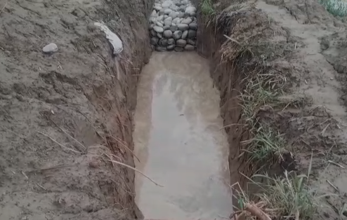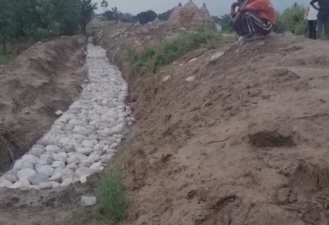 गांव के समीप स्थित तटबंध की स्थिति पहले से ही खस्ताहाल है, जिसे देखते हुए सिंचाई विभाग द्वारा सेफ्टी दीवार निर्माण का कार्य शुरू किया गया था, लेकिन महीनों बीत जाने के बाद भी यह कार्य अधूरा पड़ा हुआ है।