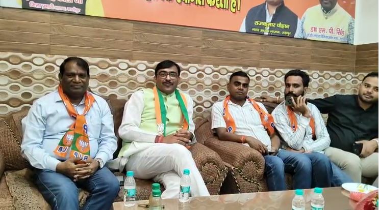 प्रेस वार्ता में पहुंचने पर भाजपा कार्यकर्ताओं ने फूल मालाओं और गुलदस्तों से जिलाध्यक्ष का जोरदार स्वागत किया।
